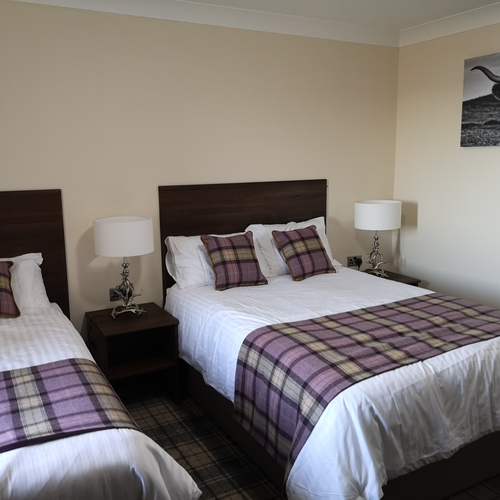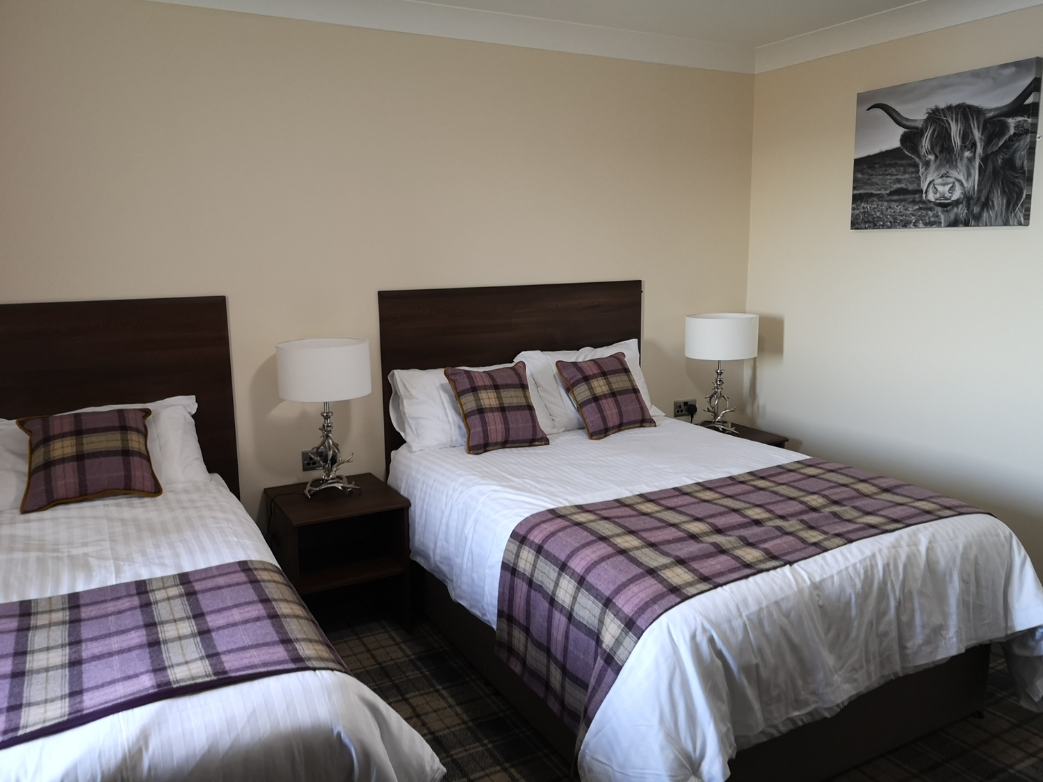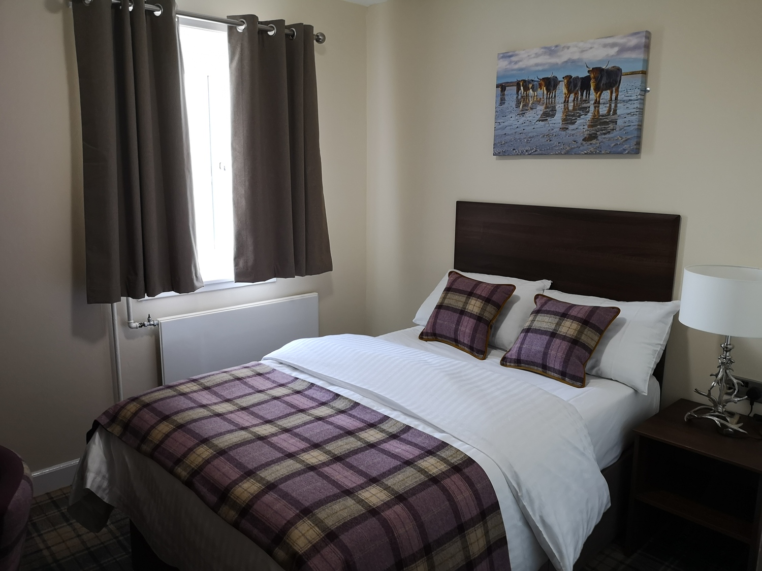 We have 15 bedrooms, 9 of which have sea views of Lochmaddy Bay, looking over to Skye.